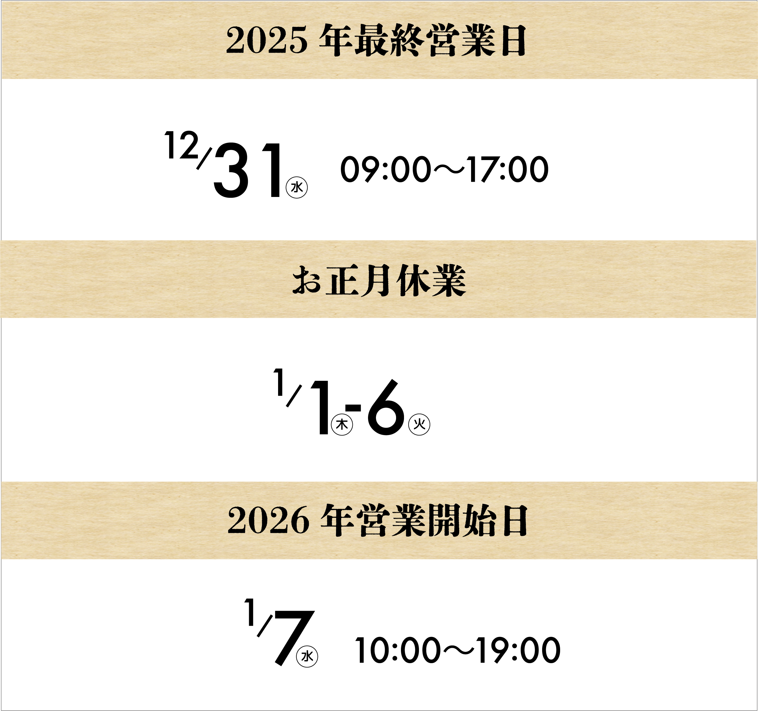 2025年末&2026年始・営業スケジュールのご案内 2025年12月18日 最終更新日時 : 2025年12月22日 bonita早いもので、12月も下旬に入りました。寒さも本格的になってきて、いよいよ年の瀬の到来を感じさせる時期ですね。さて、年末年始の営業スケジュールについてご案内いたします。